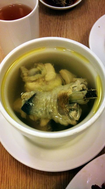阿嬤常常燉雞湯給我們喝,但是看到菜單上其他湯品的選項,比較特殊性和CP值,還是決定點了元盅雞湯.湯很好喝,很小碗,雞肉用筷子一夾就分散了.