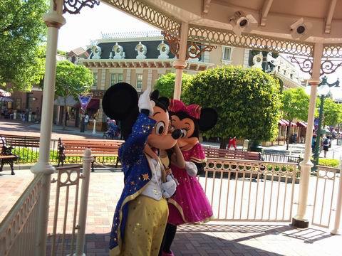 一入園就看到米奇和米妮,在我的"要求"下,馬上加入排隊 :P