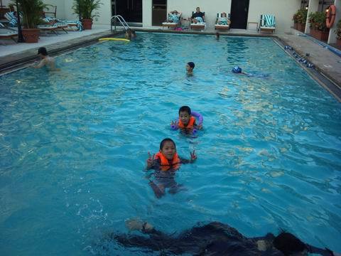 兩猴穿了飯店的救生衣,在水裡很有安全感,玩的很開心!!!