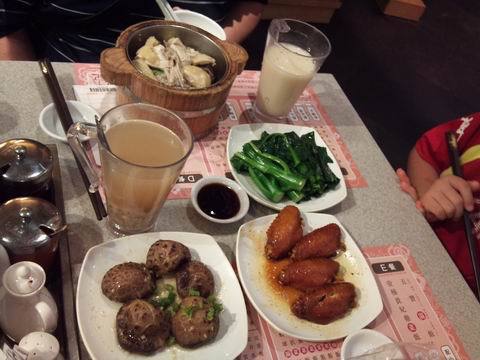 瞎密貴妃雞,凍豆漿,油菜,雞翼,冬菇,薏仁水.