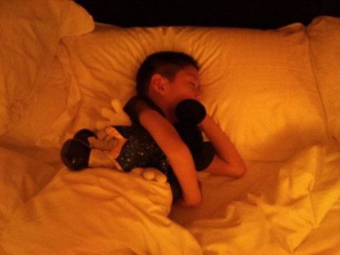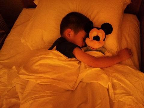 小猴自己要求要睡小床,結果半夜醒來到大床找我@@