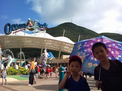 19.搭雙層巴士(上層),來去海洋公園吧。