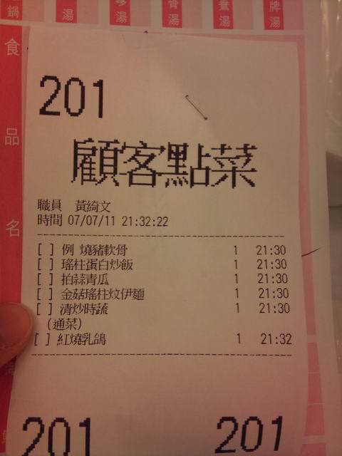 大叔問 要不要乳鴿 (他用講的我們聽不懂,大叔就用寫的)