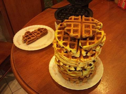兩猴做完原味的鬆餅,就和阿嬤去小公園玩耍了. 我和把鼻繼續做了抹茶和咖啡口味的鬆餅,所以又堆成一座塔了 :P